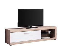 Meuble Tv Armoire Basse Meuble Tv Valencia En Blanc Effet Chene Led