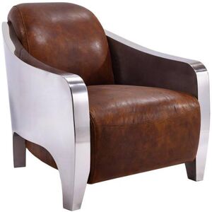 Fauteuil Vintage De Style Aviateur En Cuir Brun Patine Et Aluminium